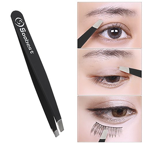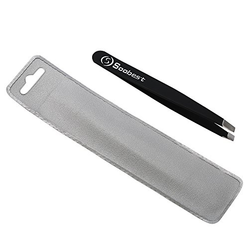 Soobest Professional Eyebrow Tweezers Slant Tip, Stainless Steel Slant Tweezer for Eyebrows Precision, Ingrown Hair Facial Hairs Removal and False Eyelash Extension (Black)