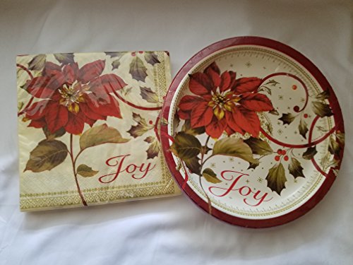 Joyful Poinsettia Christmas Holiday Plates & Napkins Party Bundle for 12 Guests