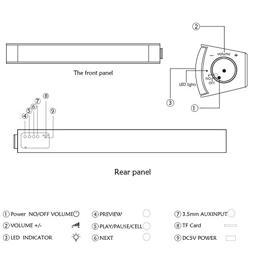Liangtou Soundbar has three modes to choose: Bluetooth Mode Line In Mode TF Card Mode Soundbar Specifications: