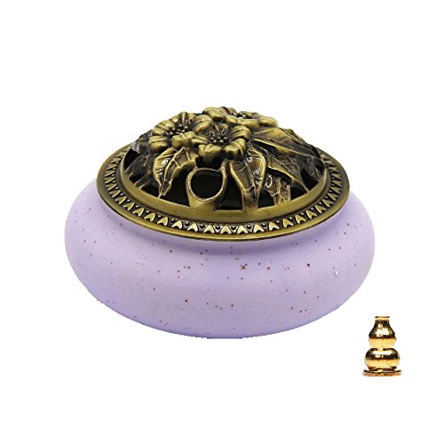 MIUSIE Ceramic Smoke Backflow Incense Burner Pocerlain Decorated Charcoal Censer Holder Home Decor Gift,S30