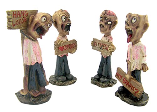Gruesome Foursome Mini Zombie Statues with Signs, Set of 4, 4 Inch