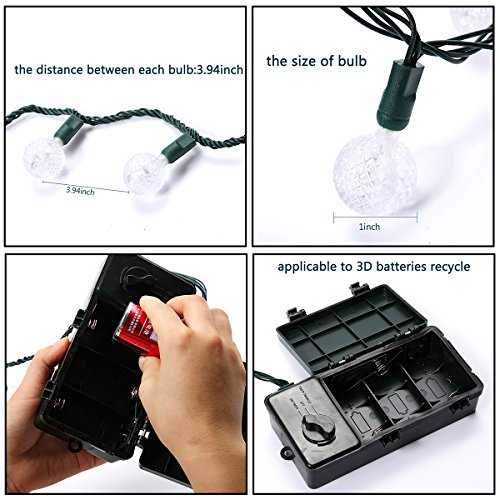 50 LED Bulbs Battery Operated Christmas Lights-AIDDOMM Fairy Starry Crystal Ball Lights with Diamond Pattern For Outdoor&Indoor, Garden, Patio, 3D Batteries, Waterproof, Warm White, 17 Feet, 2Modes