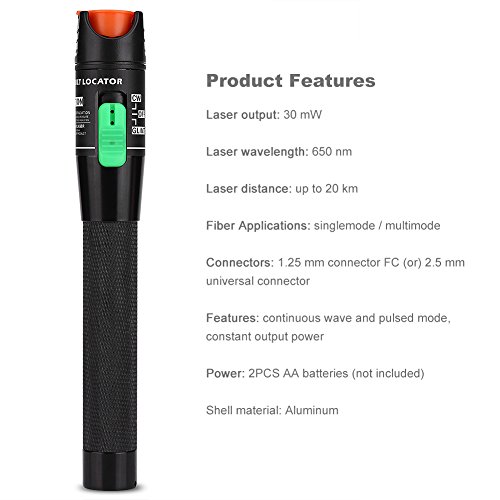 Visual Fault Locator,30km Visual Fault Locator Fiber Optic Cable Tester Meter for CATV Telecommunications Engineering Maintenance