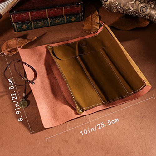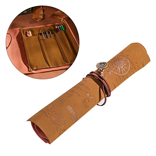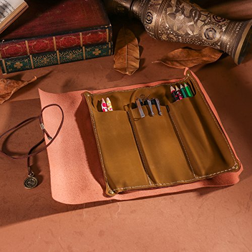NUOLUX Genuine Leather Pencil Case Pen Bags Stationery Supply Case Art Pouch Desk Tidy (Compass)