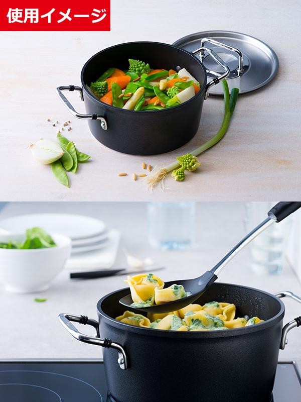 | 素材・材質 | 本体:アルミニウム(PTFEフッ素コーティング) フタ・取っ手:ステンレス、シリコン 底:ステンレス |
