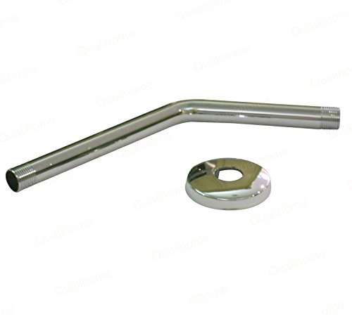 Universal Brass 12-inch Shower Arm in Chrome Finish with Flange, 45 Degree, Standard 1/2" IPS Male Thread