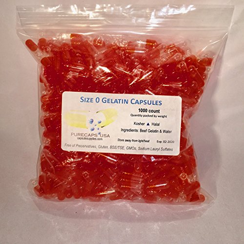 -. Title : PurecapsUSA Empty Gelatin Capsules – Size “0” – 1000 Fillable Caps – Orange/Clear Color - Kosher/Halal – Hypoallergenic – GMO Free …