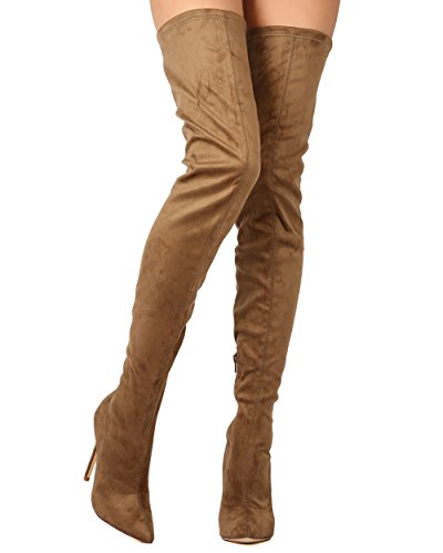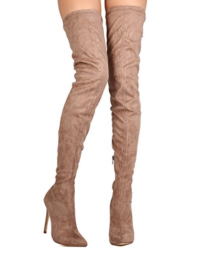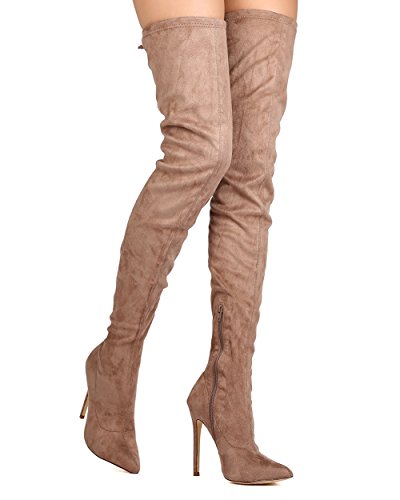 Liliana FF21 Women Faux Suede Thigh High Pointy Toe Stiletto Boot