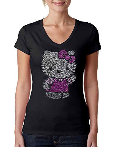 A large majority of cute sparkly rhinestone designs teeshirts to choose from! Choose with confidence, as long as these are washed inside out and no dryer, they last very long! Super sparkly and popular designs on comfortable black v-neck t-shirts