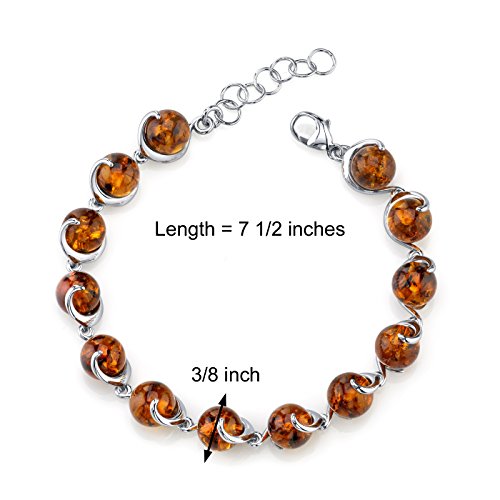 Genuine Baltic Amber, Rich Cognac Color, 13 pieces round shape. Bracelet: 10.2 grams pure 925 sterling silver, Secure Lobster claw clasp, 7.5 inch length. Bracelet features exceptional design, craftsmanship and finishing. Perfect gift for Mothers Day, Birthdays, Valentines Day, Graduation, Christmas or just about any other occasion. Money Back Guarantee. Includes a Signature Gift Box. StyleFeature