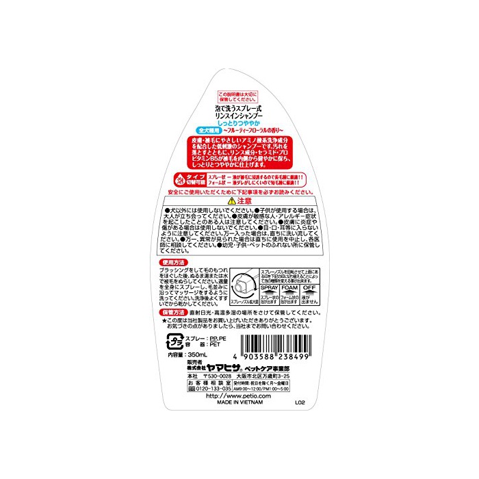 원본상품명:ペティオ (Petio) ペッツスマイルド泡で洗うリンスインシャンプ?しっとりつややか全犬種用350ML