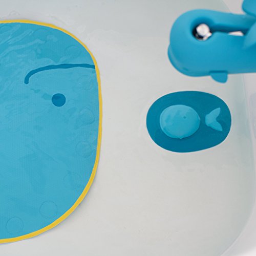 This whimsical whale smiles up at your little one through waves of bubbles, transforming every bath into an aquatic adventure. A soft rubber body and secure suction cups ensure safe bath time fun. Moby protects little fingers and toes from the drain while creating an airtight seal that keeps water in the tub. Compatible with most drains, Moby adheres to any tiled surface after use for mounted storage and safekeeping.