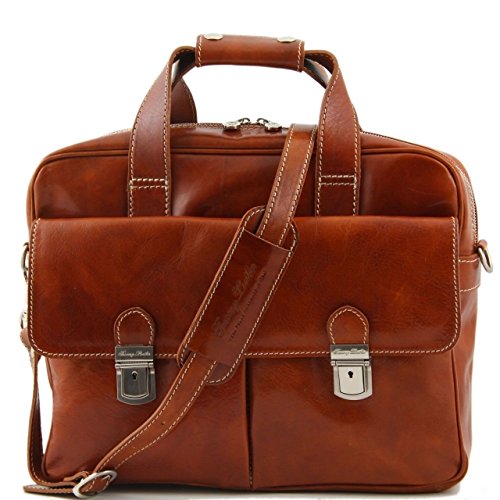 -. Title : Tuscany Leather Unisex [Personalized Initials Embossing] Reggio Emilia Leather Laptop Case w/ Front Pockets