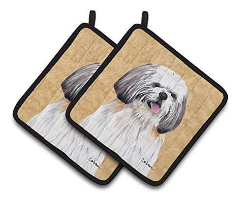 Caroline's Treasures Shih Tzu Wipe Your Paws Pair of Pot Holders SC9128PTHD, 7.5HX7.5W, Multicolor