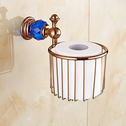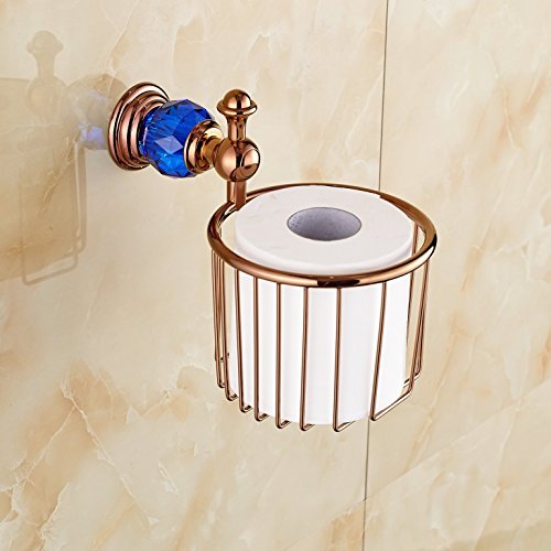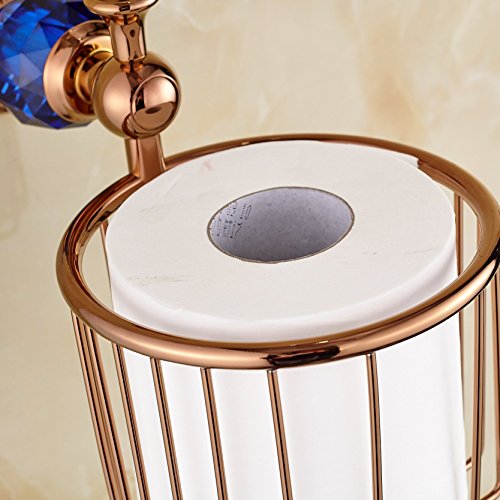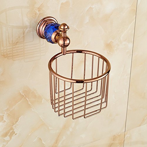 Senlesen Luxury Wall Mounted Toilet Paper Holder Storage Basket Holder Rose Gold Finish