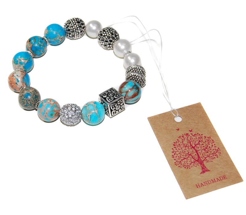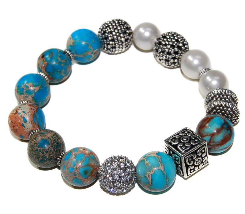=Size : Blue Gemstone / Metal Ball (12mm), Pearl (10mm)