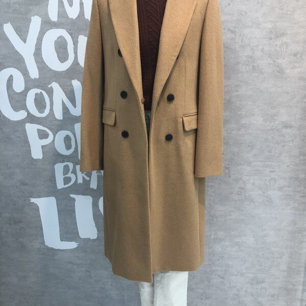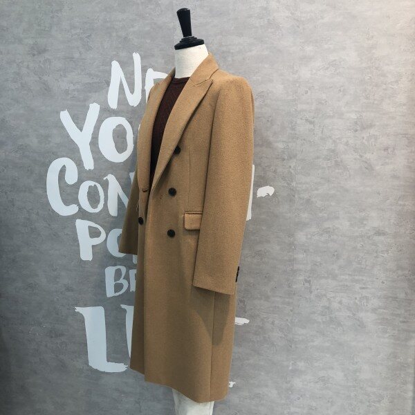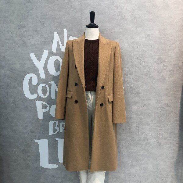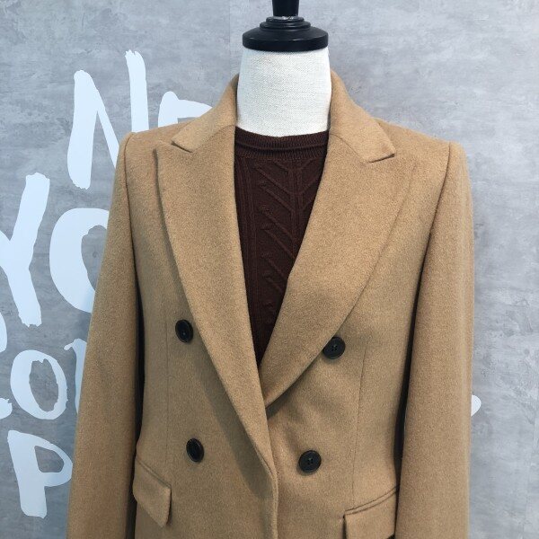 롱기장에 피크트 라펠이 시크하며 더블버튼 디자인이 클래식한 울 블렌드 재킷입니다