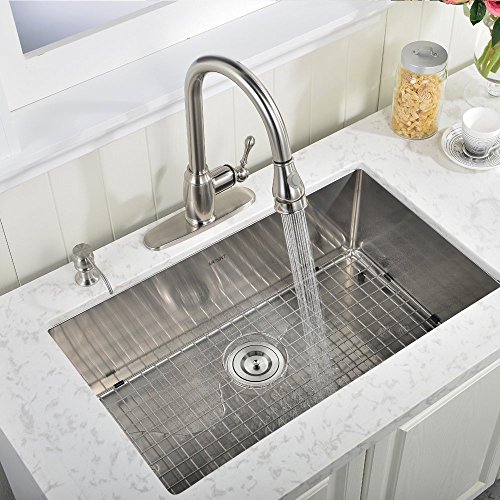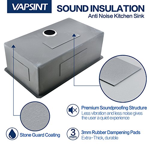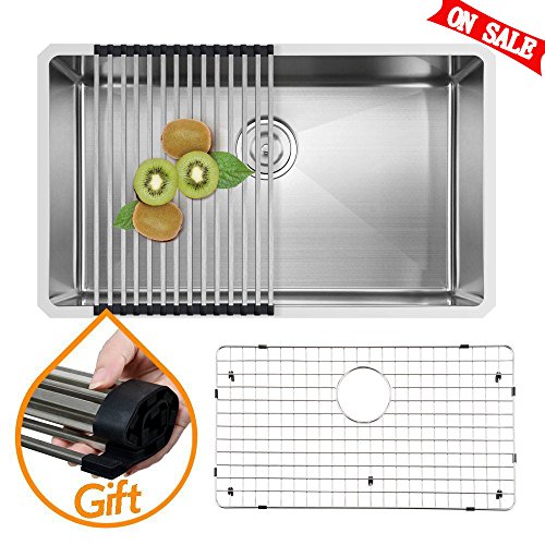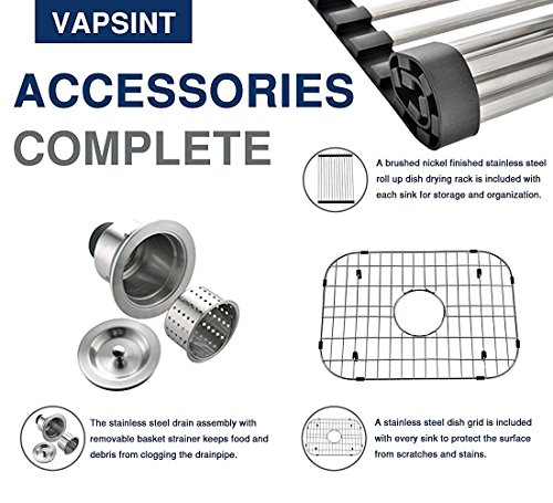 VAPSINT Commercial 30 Inch 18 Gauge 10 Inch Deep Handmade Drop In Undermount Single Bowl Stainless Steel Kitchen Sinks, Including Dish Drying Rack and Dish Grid Kitchen Sink