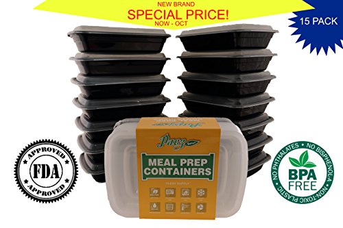 PACZSAVER 1 Compartment Meal Prep Food Container with Lid 15-Pack for Portion Control Meals - Microwave Freezer and Dishwasher Safe, Top Quality, Reusable, Stackable, BPA-Free, (25 oz)