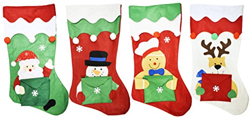 Set of 8 Christmas Stockings with Gift Card Envelopes! 18" Stockings with Adorable Christmas Themes and Envelopes for Notes or Gift Cards! (8)