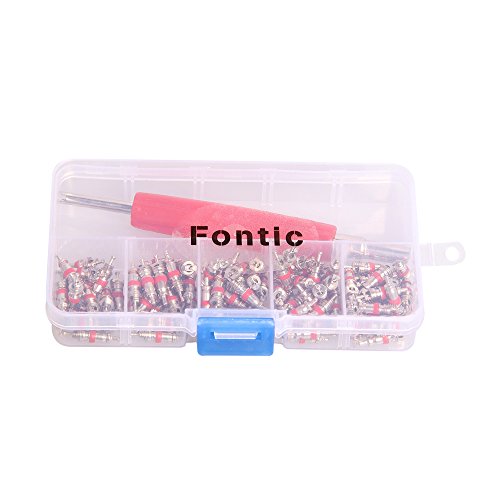 Fontic 100 Pieces A/C Car Automotive Air Conditioning Valve Stem Core with Dual Remover Repair Tool