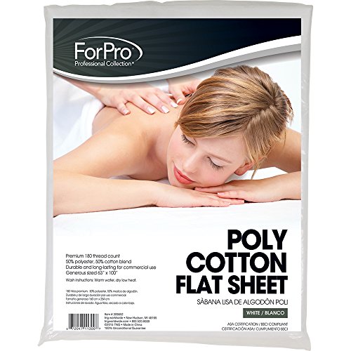 Studio : For Pro Publisher : For Pro Binding : Health and Beauty Product Description For Pro poly-cotton flat sheet is generous 63 inch x 100 inch size. Features premium 180 thread count. 50% polyester, 50% cotton blend. Durable and long-lasting for commercial use. Wash instructions: warm water, dry low heat. ASA certification / BSCI compliant. 0