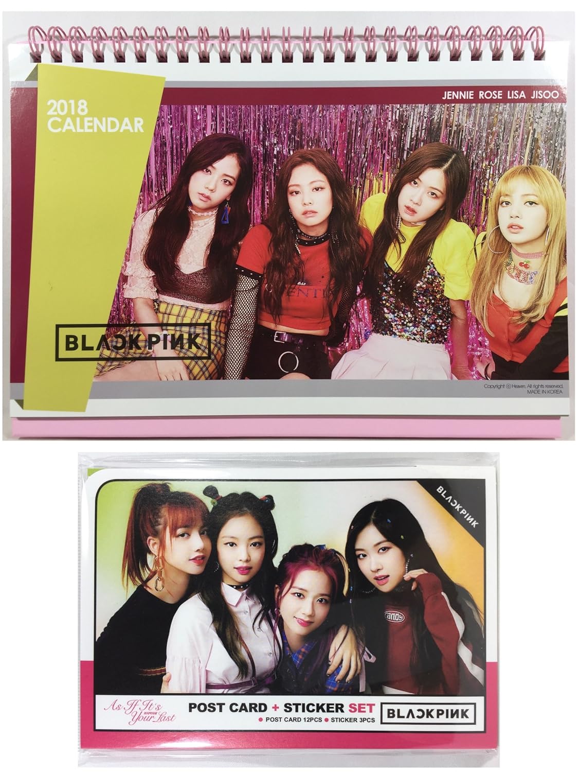 - 【グッズ内容】BLACKPINK「2018年-2019年卓上カレンダー(ステッカー1枚付き)」+「ポストカードセット(ハガキ12枚+ステッカーシール28枚(3シート)」のセット(韓国製)