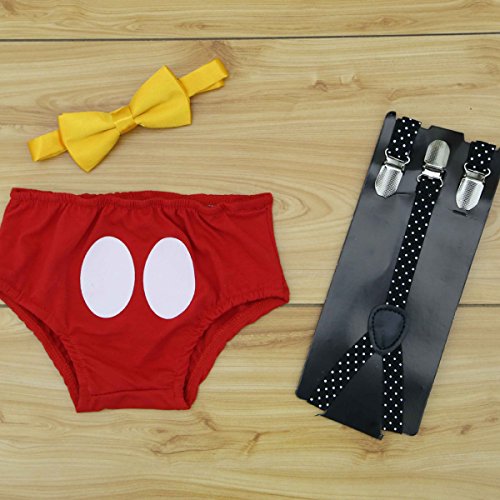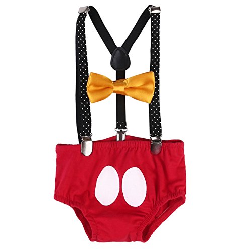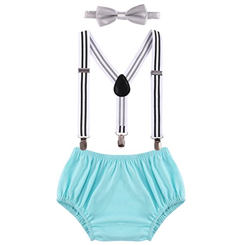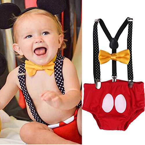 Newborn baby boys pants, Y-back clip-on suspenders and bow tie 3pcs outfits. Elastic suspenders designed with 3 clips and 2 length adjusters. Perfect as photography props costume, makes your baby look so adorable and handsome. Care Instructions: Hand wash in cold water, line dry, do not bleach and iron. If you have any question about our product, please contact us, we will response you within 24 hours.