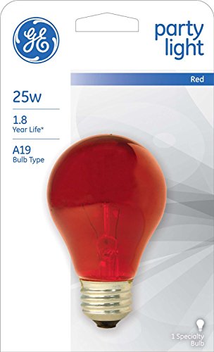 GE 49727 (6-Pack) 25-Watt Red Incandescent Party Light Bulb, A19 Shape, 1900 Lumens, E26 Medium Base