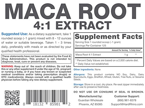 125 Grams (4.4 oz), Maca Root 4:1 Extract Powder with Scoop Included