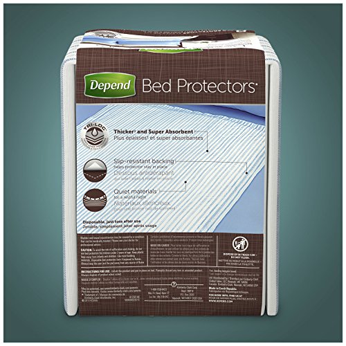 ReleaseDate : 2017-02-27 Studio : Kimberly-Clark Corp. Publisher : Kimberly-Clark Corp. Binding : Health and Beauty Product Description Take back your home with Depend Bed Protectors, discreet and stylish incontinence protection to protect against overnight leaks. Depend underpads feature a slip-resistant backing that helps it stay in place. This underpad is thicker versus the leading bargain brand and super absorbent. The TRI-LOC triple layer protection is a soft, comfortable, cloth-like fabric that helps capture leaks and odors. Depend disposable bed pads for incontinence have a designer print to blend right into your home decor. Made with quiet materials, these disposable bed mats will help you rest easy without worrying about overnight leaks. Depend incontinence products are latex-free, lotion-free and fragrance-free. 0