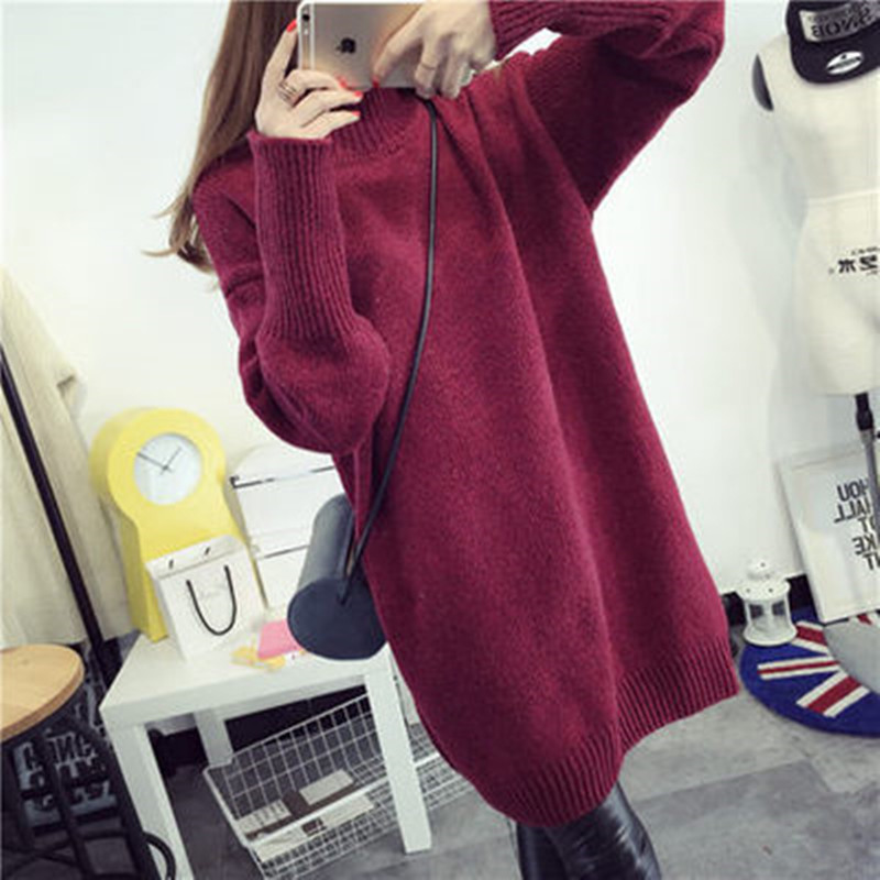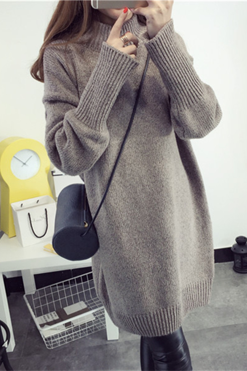シンプル無地のざっくり編みニットワンピース!袖のロングリブ編み袖がかわいい♪ヒップ周りまで隠れるチュニック丈で体型カバーも◎