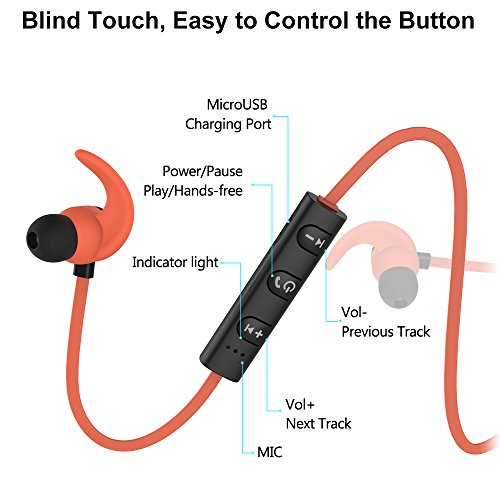 Modisches Aussehen:Beliebte magnetische Attraktion Design macht die Kopfhorer leichter zu tragen,die einzigartige Ohrhaken-Design lassen Sie Ihren Kopfhorer immer in Ihrem Ohr,nicht besorgt uber fallen,wenn Sie anstrengende Ubung zu bekommen.Eingebautes Mikrofon und erhohter Knopf lassen Sie leicht anrufen oder Musik wechseln.