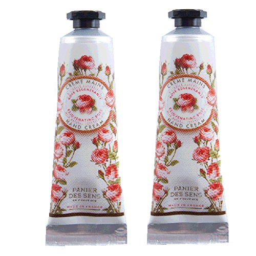 Panier Des Sens hand creams with natural, rejuvenating rose essential oils from Provence in "Rose" fragrance. You will receive a 2-pack that includes two 1-ounce tubes of hand creams.