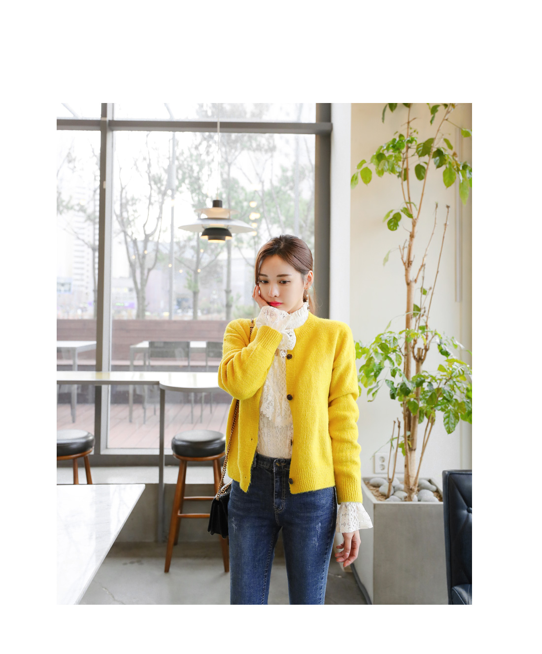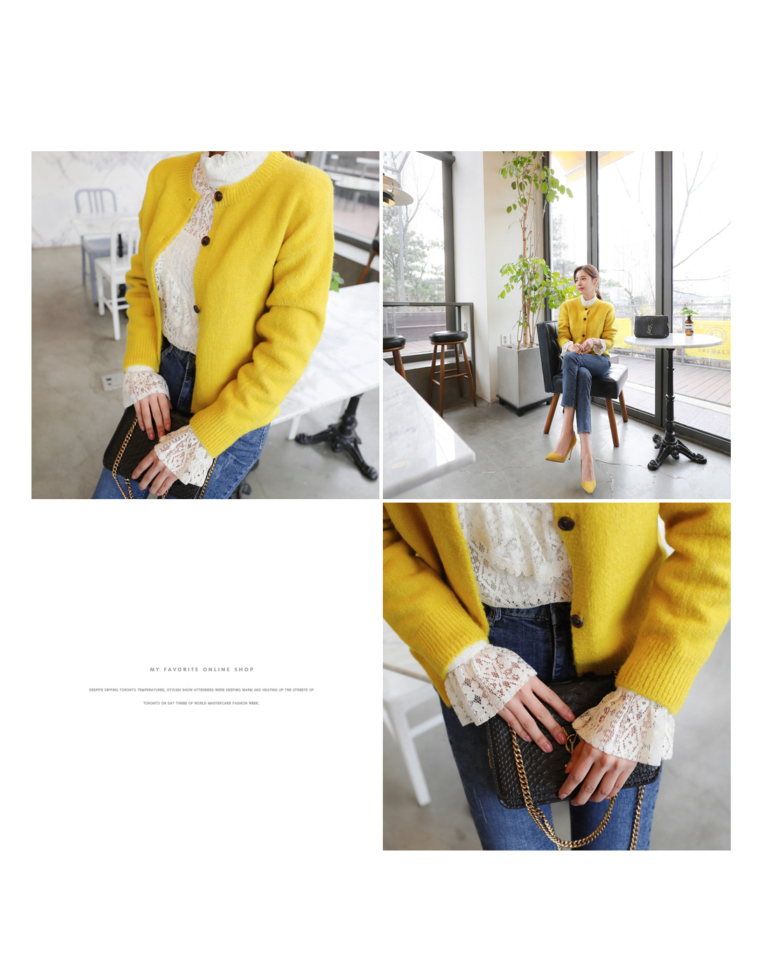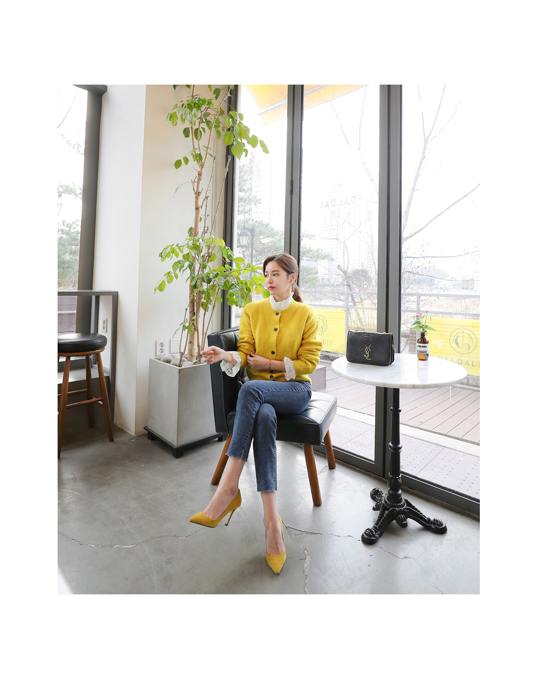 레이스 프릴 디테일이 포인트로 들어가 러블리한 무드를 더했으며