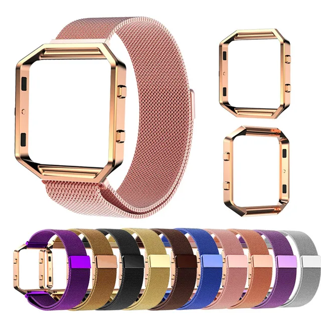 - 1X Milanese 자기 루프 스테인레스 스틸 밴드 스트랩 팔찌 핏 비트 블레이즈+ 1 개 금속프레임 (완전시계)