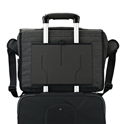 -. Feature : Weather or not: no problem with our custom blend of coated fabrics with the look of canvas and the high, moisture-repelling performance of a synthetic / Messenger-style design to wear over shoulder or across body; adjustable shoulder strap helps you get a custom fit / Multiple pockets offer easy access to quick-grab items like transit passes, keys, pens, etc. • Stretch side pocket holds a compact umbrella / Super-roomy, under-flap storage space buckles closed for extra protection when needed / Trolley sleeve/panel crafted of non-snagging material