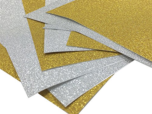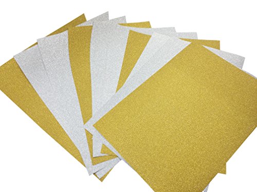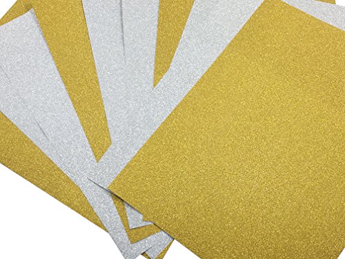 Adhesive Sheets, Misscrafts 10 Sheets 12" x 8" Adhesive Glitter Paper Sticker DIY Craft Sign Vinyl Sparkling Sticker Metallic Colors (Silver+Gold)