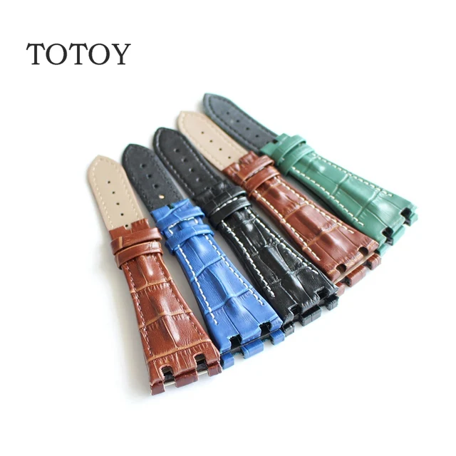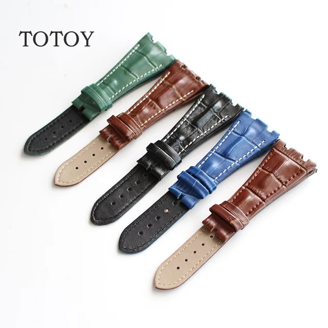 | [해외]TOTOY 새로운 도착 28 미리메터 AP 시계 줄, 4 스타일, 화이트/블랙/레드/그린 라인, 정품 가죽 시계 스트랩, 무료 배송 |