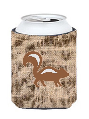 Skunk Burlap and Brown Can or Bottle Beverage Insulator Hugger