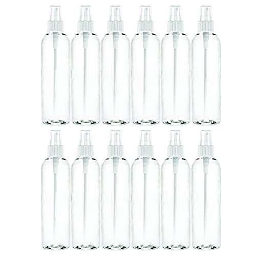 MoYo Natural Labs 4 oz Spray Bottles Fine Mist Empty Travel Containers, BPA Free PET Plastic for Essential Oils and Liquids/Cosmetics (Pack of 12, Clear)