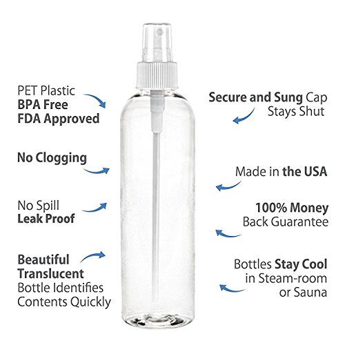 MADE IN USA BPA FREE 4ozwater spray bottles translucent fragrance spray bottles for hair and feature a unique misting sprayer that makes it easy to body spray your favorite perfume, spritzer, floral water, essential oils, cosmetics, serum. Ideal cologne spray bottle or alcohol spray bottle.