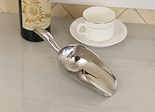 -. Title : Ferbixo Stainless Steel Ice Scoop, Bar Dry Bin Candy Spice Goods Scoop, Heavy Duty, Flat Bottom, Contoured Handle, Mirror Finish, 6 Oz, Dishwasher Safe (9.2 x 3.3 inches)
