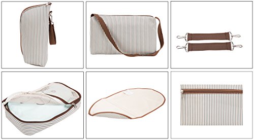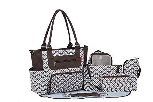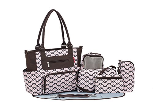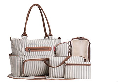The Mommy Essentials 7-piece Diaper Tote Set is an unmatched value, and the complete solution for taking baby on the go. The large tote bag, a smaller purse with carrying strap for mom on the go. It also comes with a matching changing station, two different size of accessories cases for smaller items, one insulated bottle bag, and a pair of grips strollers attachments. This set is everything a busy mom needs. 100% High quality item. Made in USA or Imported.