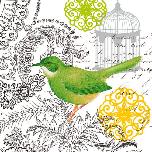 Paperproducts Design 1251177 20-Pack Beverage Cocktail Napkin, 5 by 5-Inch, Cabris Vintage Bird