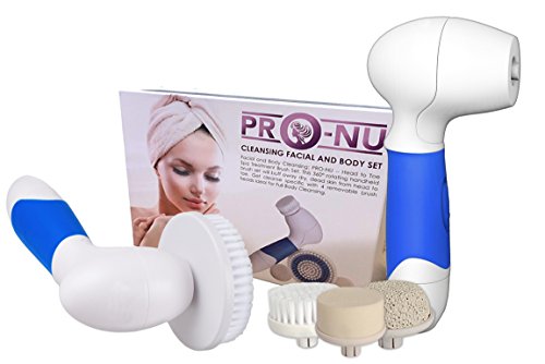 -. Binding : Misc. -. Brand : ProNu -. EAN : 0547813552512 -. Feature : 2-speed Waterproof facial cleanser brush - Gentle for daily deep cleansing and exfoliation for sensitive and acne prone skin. Reduce the appearance of blackheads, large pores, dry dull and oily skin; Pumice stone microdermbrasion attachment stimulates safe collagen growth / 100% Safe and Effective - 10 times more effective than regular facial cleansing. Completely remove dirt and oil on your face while leaving your skin glowing and Soft; It clears up blemishes by unclogging your pores; It can be used with all facial cleansers, hand-washing cream, foot-cleaning product and anywhere on your body / 4 replaceable applicators included for different usage, big brush head, face brush head, pumice head, sponge head / More Effective than Manual Cleansing - New waterproof batteries operated motor head technology removes oil, makeup, dirt and impurities 10 times more efficient than manual scrubbing while providing a relaxing massage. / Ideal for Acne and Anti-aging Treatment - This is an ideal product for people with acne. It helps clear up blackheads and acne by expelling impurities deep within your pores without irritating the skin. This also prevent future breakouts. you will experience a reduction of fine lines and dark brown spots as dead skin cells are exfoliated. -. Label : Flora's Product -. Manufacturer : Flora's Product -. ProductGroup : Beauty -. ProductTypeName : BEAUTY -. Publisher : Flora's Product -. Studio : Flora's Product -. Title : Pro-Nu® Waterproof 4 in 1 Anti-aging Spa Kit - Deep Body and Facial Cleansing Brush System for women & Men. Gentle Sonic Scrub Cleaning for sensitive skin. Beauty Tool Set Includes Pumice Stone for Microdermabrsion to Exfoliate Dead Skin Cells and stimulate Collagen. Enjoy Acne Free, Radiant and Youthful Skin -. UPC : 547813552512