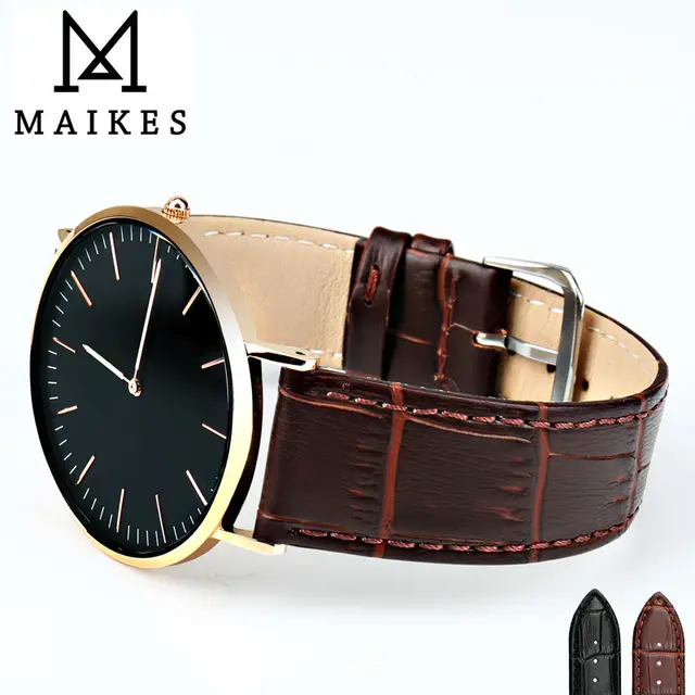MAIKES 새로운 도착 부드러운 정품 가죽 시계 스트랩 스테인레스 스틸 버클 팔찌 시계 밴드 18 미리메터 20 미리메터 22 미리메터 얇은 줄