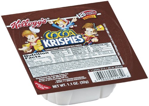 -. Feature : Pack of 96, 1.125-ounce single serving bowls of Kellogg's Cocoa Krispies Cereal / Chocolatey, sweetened rice cereal / Enriched with 13 essential vitamins and minerals / Low fat; zero trans or saturated fats; zero cholesterol / Delivers the snap, crackle, pop children love--with chocolate