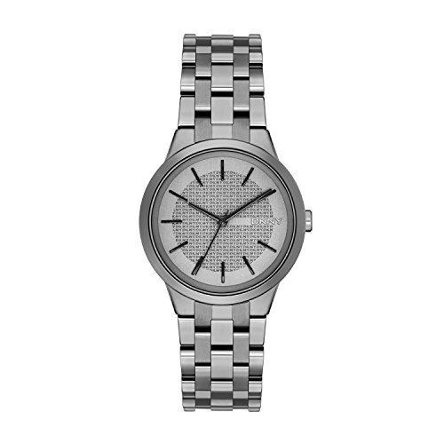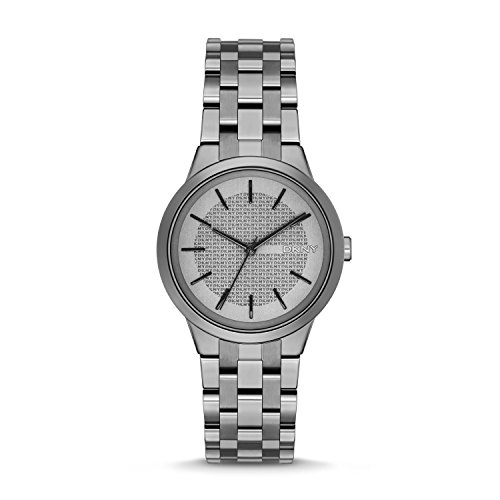 Studio : DKNY Watches Publisher : DKNY Watches Binding : Watch Product Description Dress watch, Japanese quartz movement, Black hands, Black sweep seconds, Black markers, Gunmetal-tone dial with 'DKNY' graphic and gunmetal-tone logo, Adjustable polished gunmetal-tone stainless steel bracelet with brushed inserts and push-button-clasp, Polished gunmetal-tone stainless steel bezel, Large polished gunmetal-tone stainless steel round case, Gunmetal-tone stainless steel crown, Stainless steel caseback, Mineral crystal, 5 ATM (50 meters/165 feet water resistant) 0