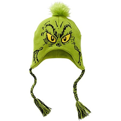 Binding : Apparel Product Description Let everyone know exactly how you feel about the holiday season with this warm and comfortable Laplander Hat based on the iconic Dr. Seuss creation, the Grinch. Made of a soft but durable acrylic blend with a knit construction. This laplander hat is longer on the sides to envelop your ears and your head in coziness. The mischievous face of the Grinch features prominently on the front, while the top is accented with a pom-pom designed after his hair. A set of braided tassels completes the beanie. This officially licensed Dr. Seuss product has a one-size-fits-all profile and is available in green, of course. 0